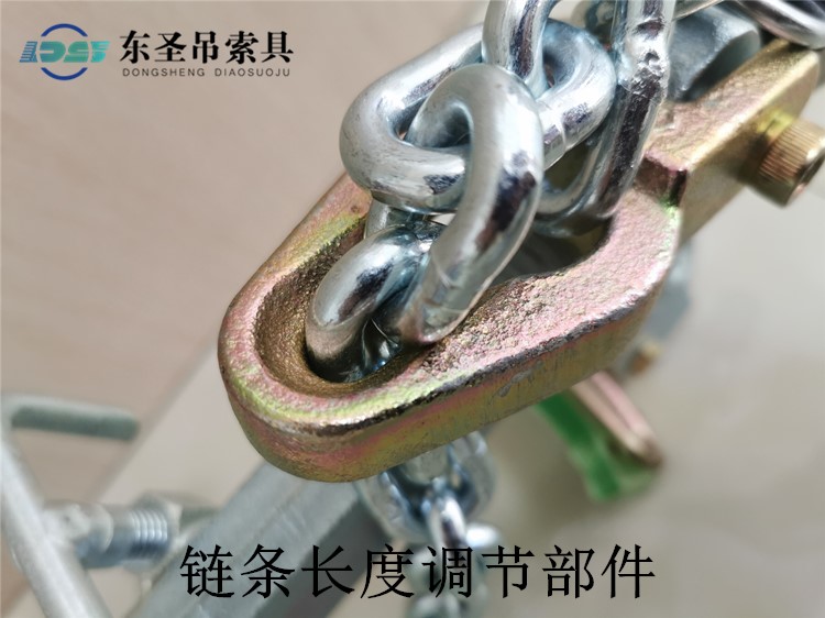 • 東圣吊鏈?zhǔn)降鯅A夾具上的鏈條使用的是80級起重鏈條,表面為鍍鋅,可以更好的起到防銹的作用。80級起重鏈條抗拉力性強(qiáng),硬度較高,并且有一定的韌性,耐磨。 東圣吊夾采用80級起重鏈條